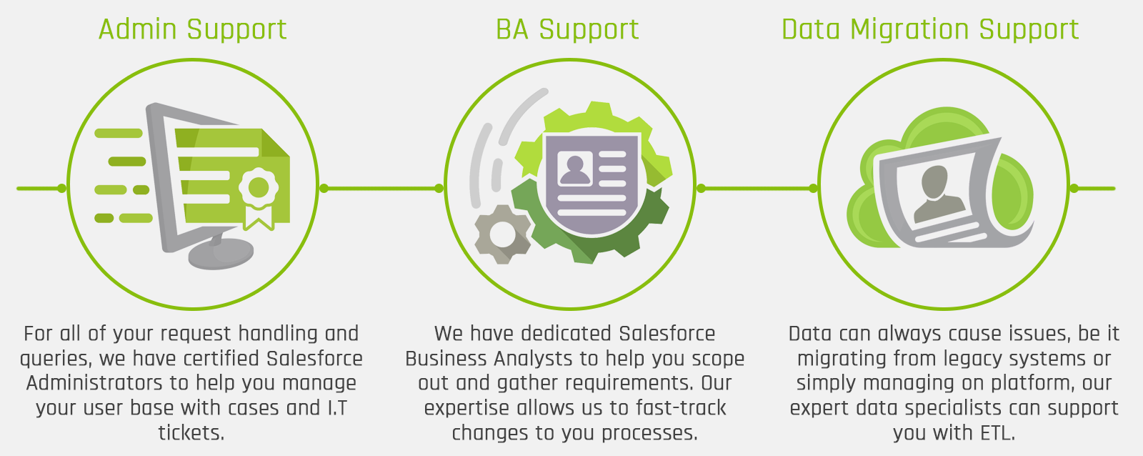 If you've got to a position where you're up and running with your Salesforce setup and now require support with business requests and small changes or tweaks, you can count on us to keep things ticking along nicely.